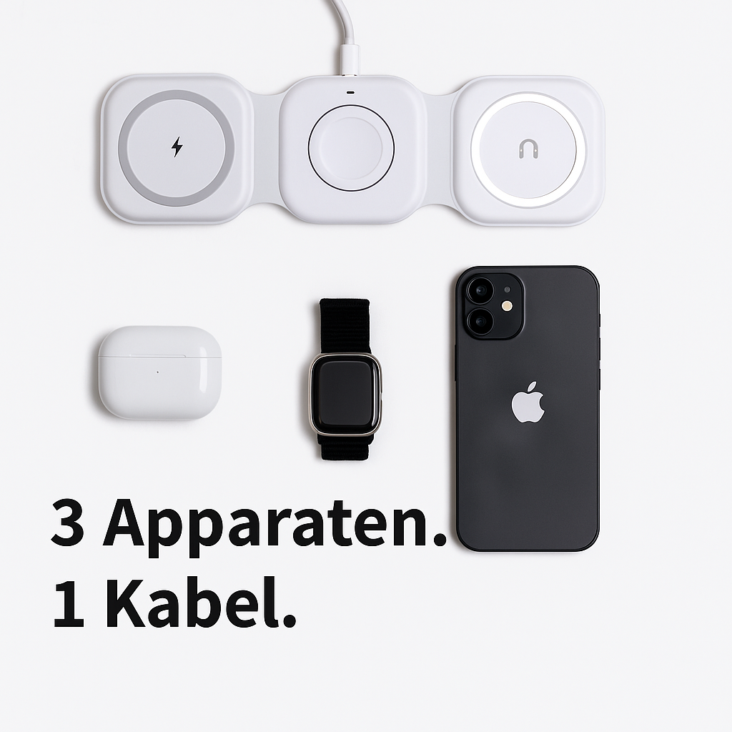 | Functie | Draadloze 3-in-1 oplader voor iPhone, Apple Watch en AirPods |